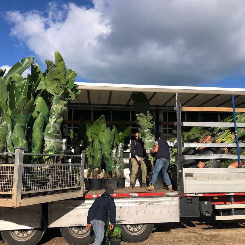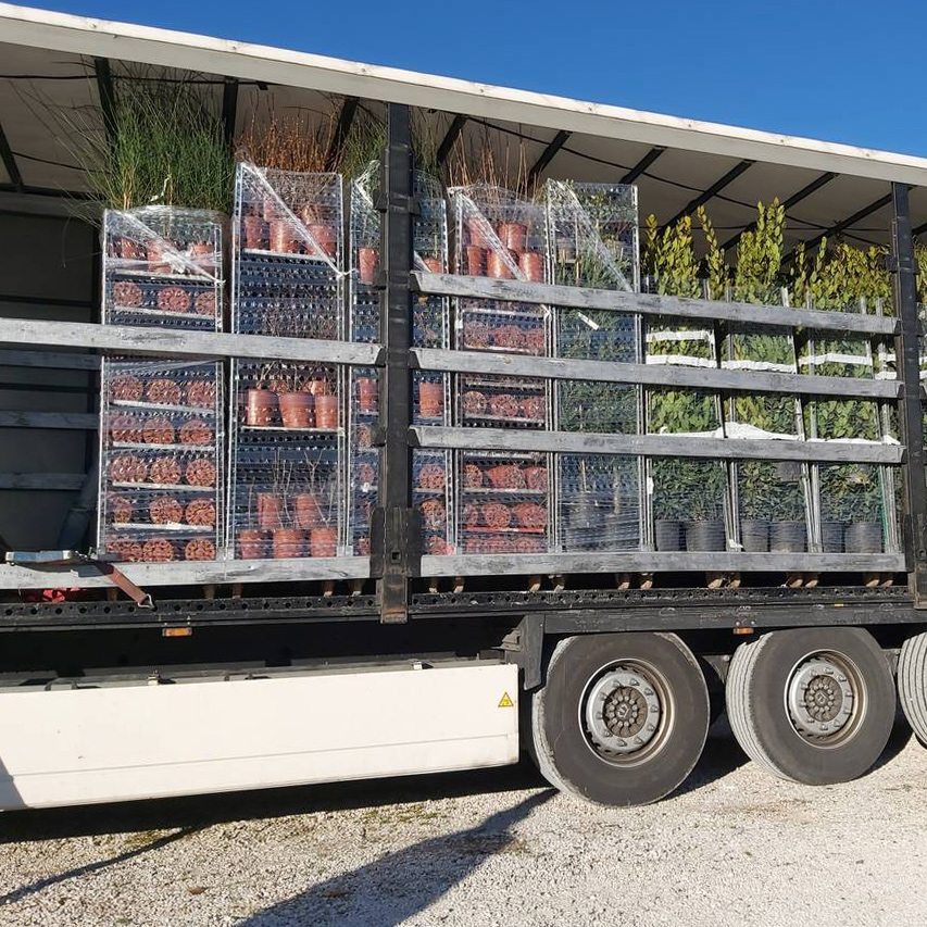 The choice of how to load the plants into the truck/container depends on many factors. Exporting to many different countries we must consider all of them together with the clients, not forgetting that plants are alive and that each loading way has got virtues and vices.